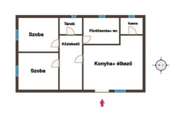 - Bakstenen woning van 60 m² op een betonnen fundering.