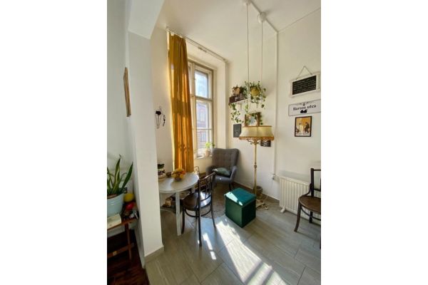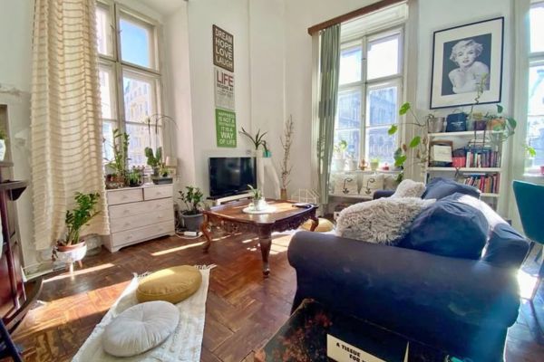 Dit pand bevindt zich in het beste gedeelte van het VIII. District, op de eerste verdieping van een verzorgd appartementencomplex met een lift. Het appartement is 76m² groot en verkeert in de huidige staat, wat renovatie vereist, maar beschikt over een zonnige en praktische indeling.
