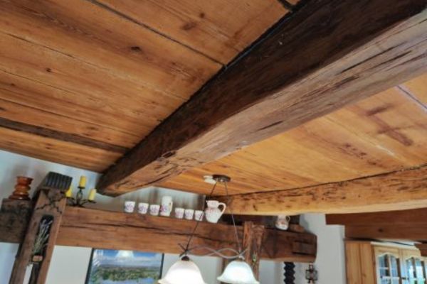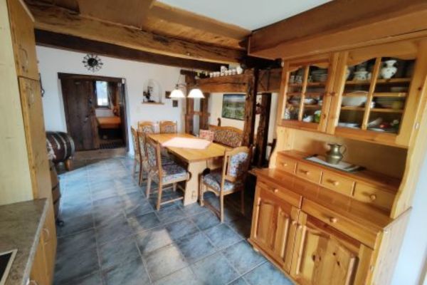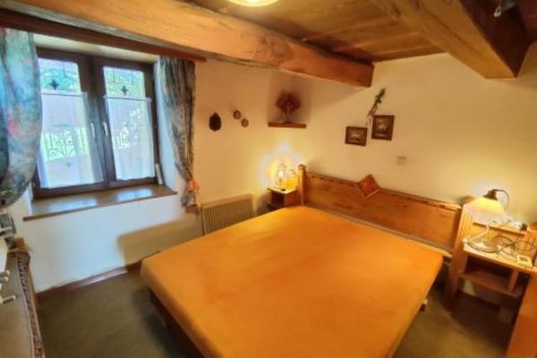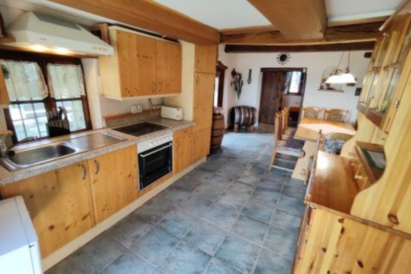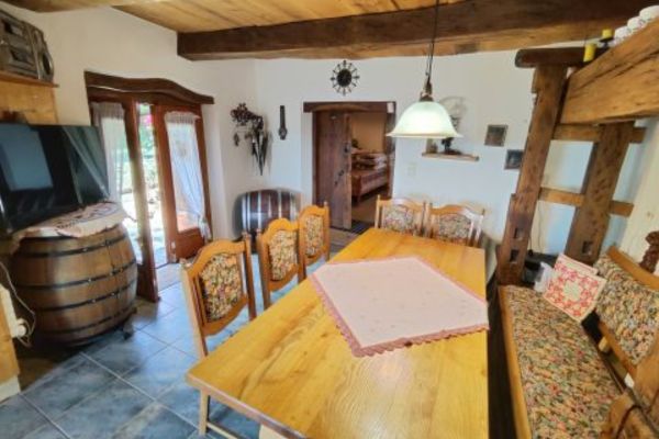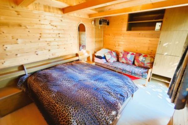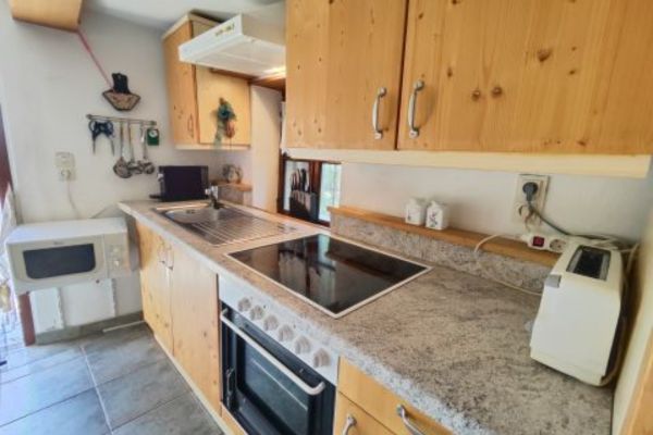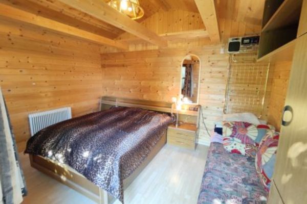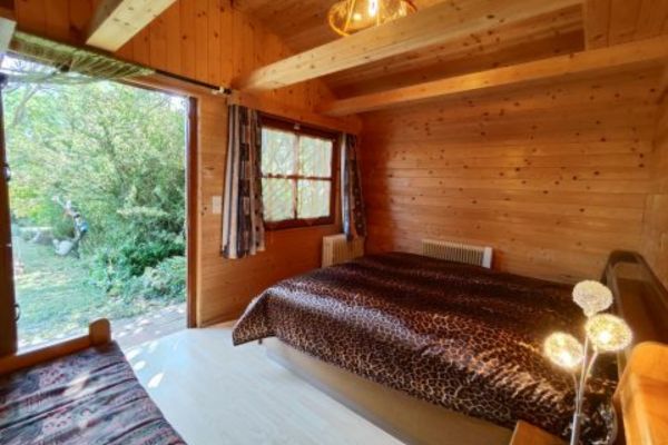 Het huis, in de stijl van vervlogen tijden, beschikt over een keuken met eetgedeelte, een slaapkamer en een douche/toilet, omgeven door een groot terras. Het houten huisje biedt een extra kamer en een berging ernaast.