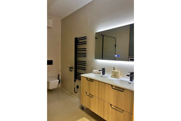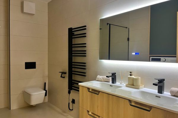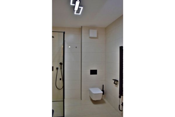 • Sanitair: Luxe badkamer (9,5 m²) met hoogwaardig tegelwerk en een separaat toilet.