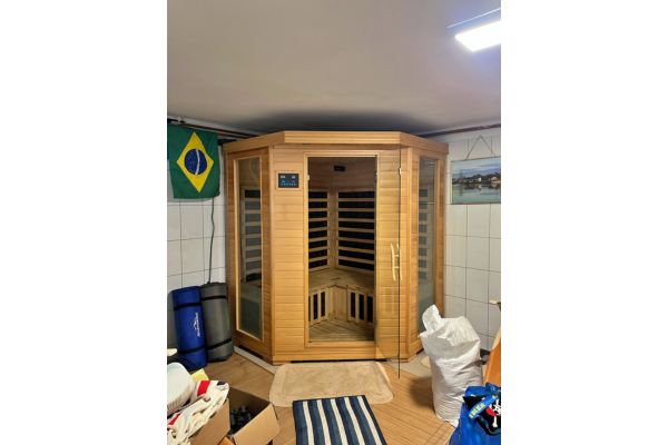 Begane grond (Wellnessniveau): Hier vindt u uw eigen spa met een 5-persoons sauna, een hydromassage-douchecabine en een fitnessruimte met diverse apparaten. Ook de stookruimte bevindt zich hier.
